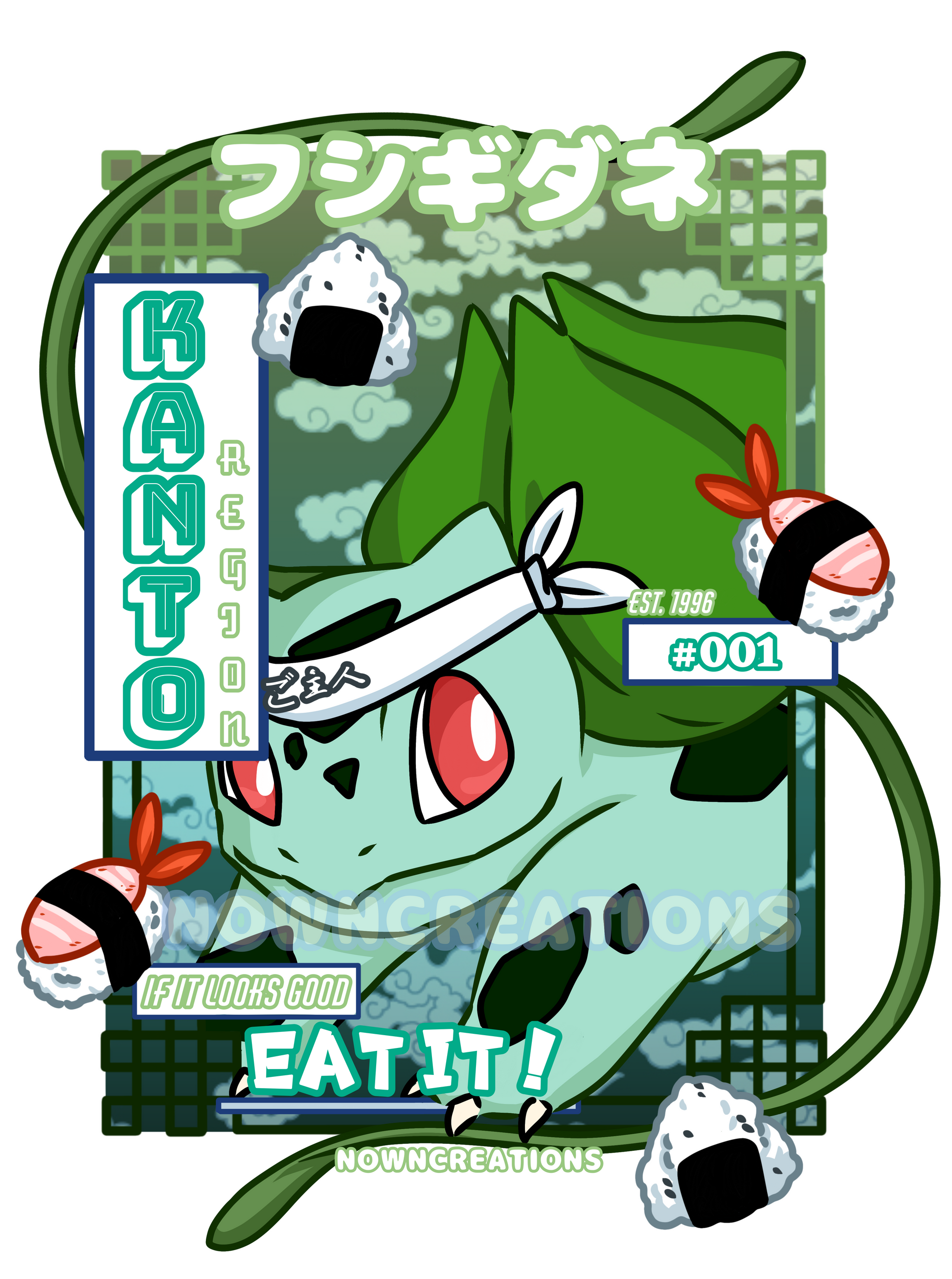 Inspired by our love for food and pokemon, here is our next installment in our artwork series! The ultimate goal is to have all designs from generation 1 completed to make a full wall display. Start your collection now with this print! (Watermark will not be on final print/only used for online purposes)