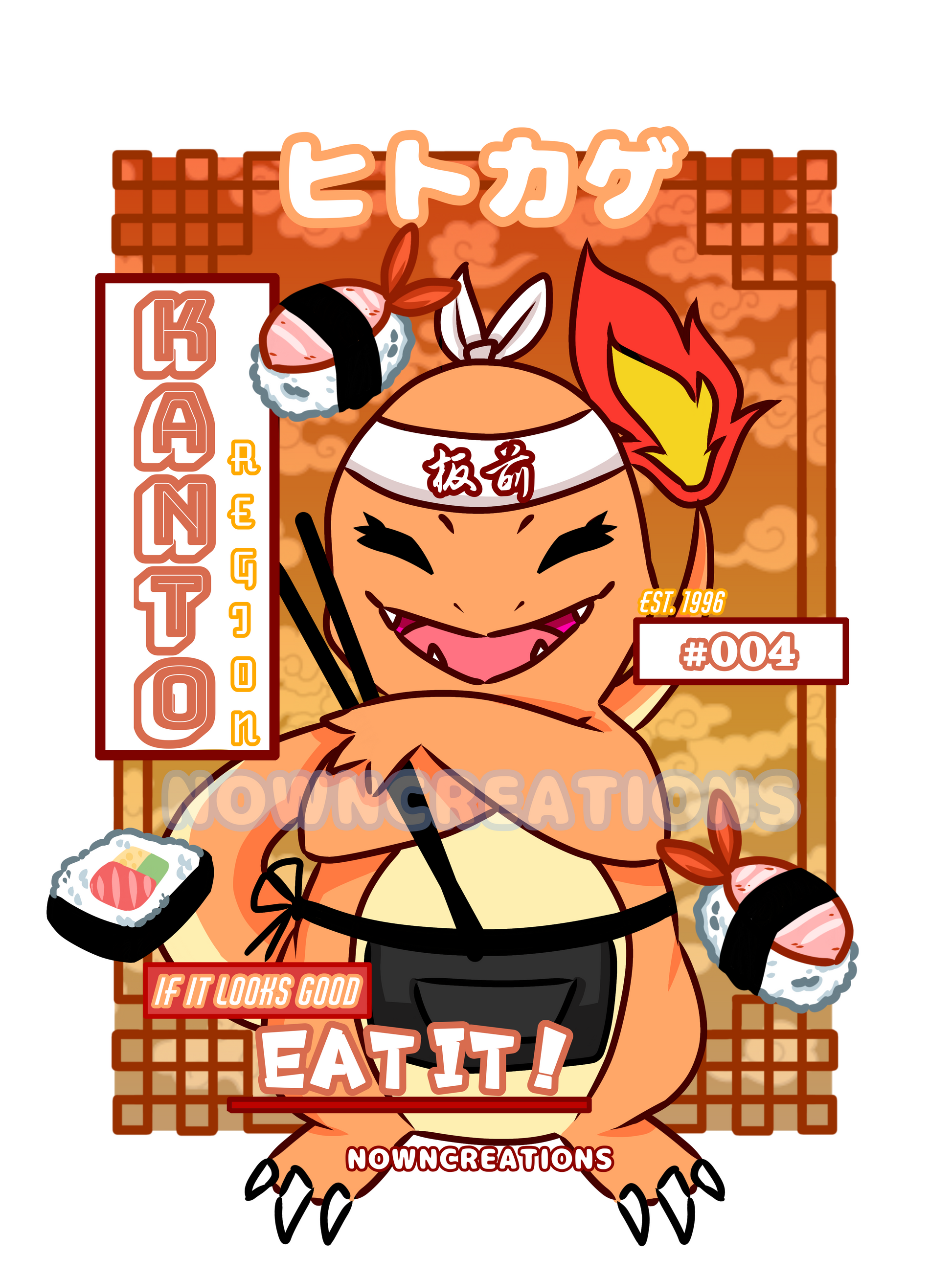 Inspired by our love for food and pokemon, here is our next installment in our artwork series! The ultimate goal is to have all designs from generation 1 completed to make a full wall display. Start your collection now with this print! (Watermark will not be on final print/only used for online purposes)