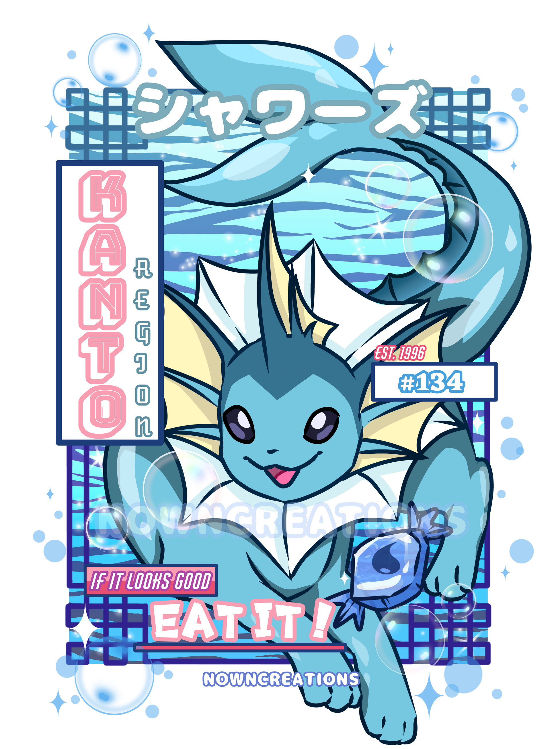 Inspired by our love for food and pokemon, here is our next installment in our artwork series! The ultimate goal is to have all designs from generation 1 completed to make a full wall display. Start your collection now with this print! (Watermark will not be on final print/only used for online purposes)